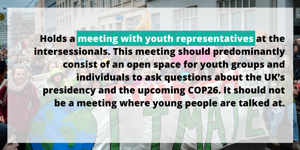 As the UK are official co-hosts to the UNFCCC process this year we are asking that the UK Government use their role as chair in the upcoming SB52 negotiations (also known as intersessionals) to maximum effect.